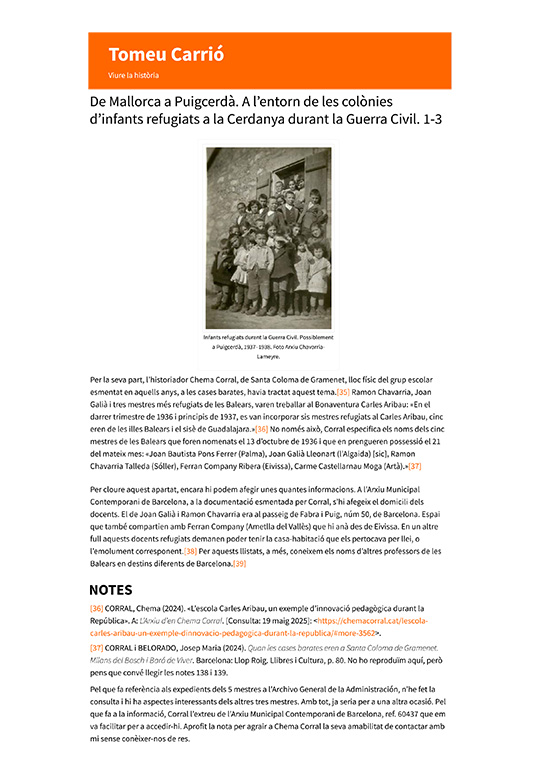 De Mallorca a Puigcerdà. A l’entorn de les colònies d’infants refugiats a la Cerdanya durant la Guerra Civil. 1-3