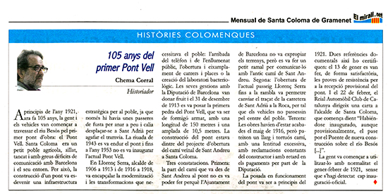 Publicat a 6 de març de 202615 de març de 2026105 anys del primer Pont Vell Publicat a El Mirall.net, núm. 264, pàg. 7, març 2026.