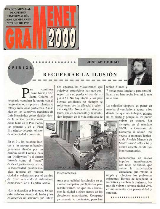 Publicat a 2 de gener de 201028 d'abril de 2024Recuperar la ilusión Publicat a Gramenet 2000 nº 70. Gener 1995.
